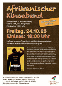 Auch heuer findet wieder ein afrikanischer Kinoabend des Vereines Socialis for The Gambia e.V. im Ring-Theater statt. Gezeigt wird am Freitag, 24. Oktober der Film „Der lange Weg zur Freiheit“. Der Film basiert auf der im Jahre 1994 erschienen Autobiografie des Anti-Apartheit-Kämpfers und früheren Präsidenten Südafrikas: Nelson Mandela.